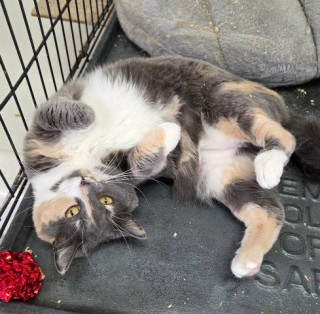 FOR ADOPTION: POM is an approximately 2 year old female that has been in our care for 10 months now. You may recognize her from previously being advertised looking for a barn type home. We are incredibly happy to announce that Pom now wants to be someone’s treasured pet. Due to the quiet dedication of a small group of volunteers Pom has transformed from a fearful and aggressive girl to an affectionate love bug that wants nothing more than to snuggle. She is meeting more people everyday and expanding her trusted group with each interaction. Pom takes a little time to trust new people in her life but once she trusts you it is 100%. She loves to be pet and snuggled (belly rubs are her favourite) and she’s quickly learning that being held and hugged feels great! Pom does also have a bit of a playful side. Toy mice are her favourite and she will likely still be a fantastic hunter if given the chance. Pom is excellent with other cats and will flourish in a home with another friendly feline or felines for companionship and to be role models for her first time living in a home. She is also comfortable with calm dogs, over exuberance will still scare her but if the dog can ignore her while she settles in Pom will be happy to share space with them. Pom is still quite nervous of loud children but she will happily accept pets from them while they are calm and gentle. Her ability to live with children will depend on their personalities but she can absolutely handle kids visiting. Although she was outdoors prior to coming to NWAS we do feel Pom will do best in an indoor only home as she settles into life as a pet. She could go into hiding if she is allowed outside and that would be heartbreaking. Pom has become super cuddly and affectionate, she very obviously wants to love and be loved by people. All that being said, she will still require a patient family that will give her the time she needs to settle into a home environment. A home is something she’s never experienced before and there are bound to be many aspects of home life that will be scary as she gets used to them. She is spayed, vaccinated and up to date on parasite control. If you’ve been looking for a snuggly buddy to add to your patient family apply today for a chance to meet POM