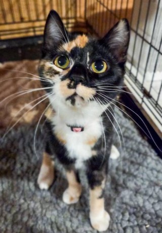 FOR ADOPTION: VEGA is a stunning 7 month old female looking for a loving and understanding family. Vega was born feral in the back yard of one of our board members. Luckily the entire kitty family was trapped and brought indoors once the people returned home from a winter away and realized they were now sharing their property. Vega was quite quick to come around to human handling with the help of lickable tube treats. Now Vega loves to be pet and cuddled and she has a super playful side once’s she’s comfortable in her environment. She’s been quite good with the other cats at the shelter and would love to find a home with one of her family members or another playful and friendly cat. Vega has had limited exposure to dogs so far and would do best with a calm and uninterested canine buddy. She can also be a little overwhelmed by rowdy children and would prefer a calm home environment whatever the age of her family. Vega is very comfortable indoor only or she does have the bush smarts to be indoor/outdoor in a safe rural environment once she is very comfortable in her home. She is spayed, vaccinated and up to date on parasite control. If you’ve been looking for a fun, sweet young cat apply today for a chance to meet VEGA