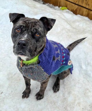 FOR ADOPTION: MUPPET is a stunning approximately 1 year old, 50lb female Pitbull mix that was found abandoned in the woods with her 6 babies just before Christmas. She’s so lucky to have been found by a caring couple that was able to bring the entire family to safety. The majority of Muppet’s pups have move into their forever families and she has been fully vetted and finished testing which makes her ready to find her happily ever after. Muppet is the absolute sweetest girl with people. She loves to be loved, she’s a fantastic cuddler and she could play all day if you wanted to. Muppet is an athletic, high energy, intelligent girl that is looking for a family that will match her zest for life. If you’re an avid runner, cyclist, skier etc or if you’re looking to get competitive in dog sports such as tug pole, disc or dock diving this could be your new best friend. Muppet will go hard during any activity or adventure and once she’s home she will be all about the snuggles. She is looking for a home as an only pet as she is very selective with other dogs and has proven she will chase a cat if it runs. She has been fantastic with the 8 and 10 year old children of one of our care takers, those kids love to play just as much as she does. Muppet has been very clean in her kennel and is not overly destructive. The occasional squeak toy gets a squeakectomy but she’s never chewed on her bedding or the majority of her toys. Muppet is muzzle trained and loves going for walks. She’s also been good in the vehicle. Muppet is spayed, vaccinated and up to date on parasite control. If you’ve been looking for a rad adventure buddy or driven training partner apply today for a chance to meet MUPPET